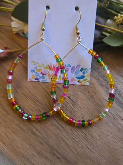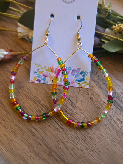 Introducing the Praise Hoops — lightweight, joyful beaded hoops designed to brighten your day and your outfit. Handmade with glass seed beads on a gold-tone hoop, these earrings are a beautiful reminder to praise Him in the everyday moments.