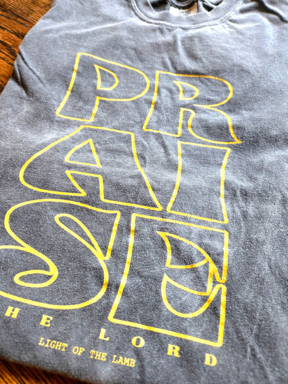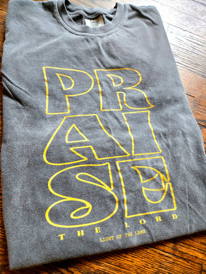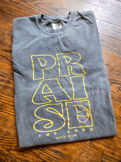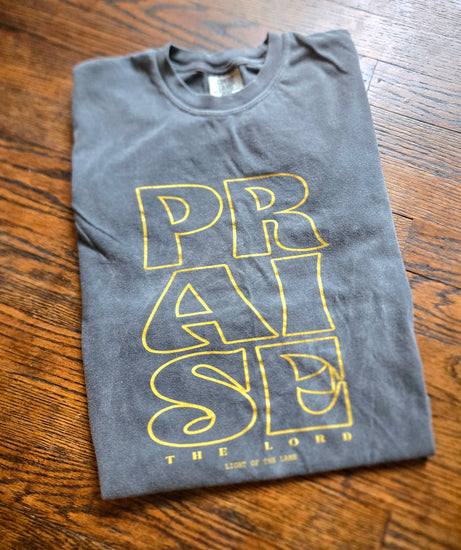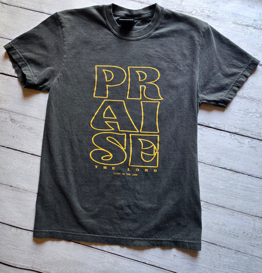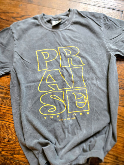 Make a bold statement of faith with this pepper-colored Comfort Colors tee featuring a trendy "PRAISE The Lord" design in vibrant mustard ink. The striking contrast of colors and modern typography makes this tee a standout piece that’s perfect for sharing your joy and devotion.
