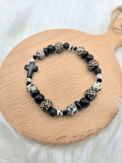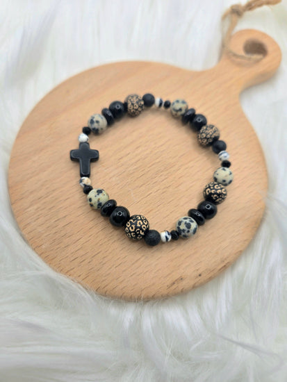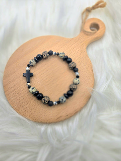 A bracelet for the one who stands firm in faith. With bold black and soft cream beads, this piece reminds us to stay rooted in Christ no matter what life brings.