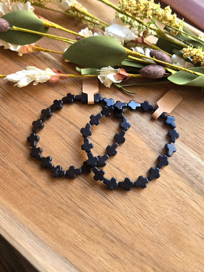 Minimalist yet meaningful — this bracelet is made entirely of sleek black cross beads, creating a bold statement of unwavering faith. Whether worn alone or stacked with other pieces, it serves as a constant reminder to stand firm and remain rooted in Christ.