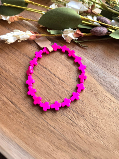 Make a statement of faith that can’t be missed — this bracelet features a full strand of neon pink cross beads for a fun, fearless, and joy-filled style. Bold color meets bold faith, making this the perfect piece for anyone who loves to shine bright for Jesus!