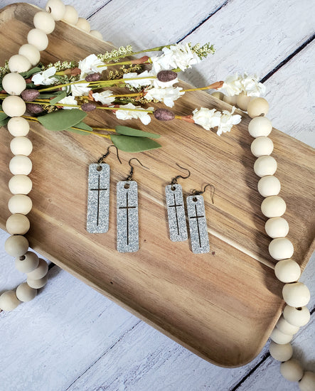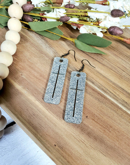 Silver Glitter Cross Earrings