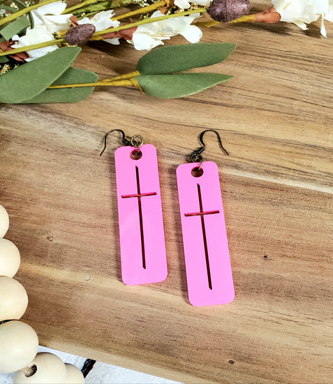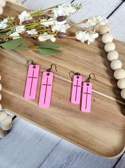 Hot Pink Acrylic Cross Earrings