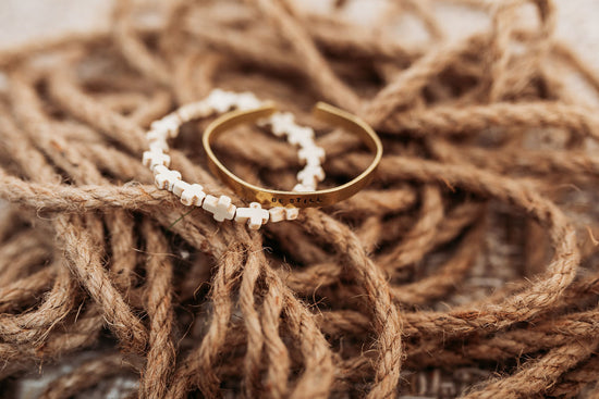Beautiful white howlite cross beads. Bracelet measures 7"